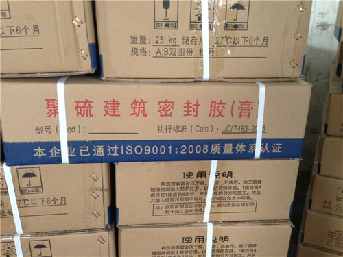 聚硫密封胶另一种为双组份。A组份为桶装白色膏状,B组份为瓶装液体固化剂,(为方便施工方对颜料要求,颜色单独盒装,一合一组)。使用时将B组份液体全部挤入A组份桶内,按施工颜色要求放入颜料,迅速上下搅拌*均匀。用小铲将混合好的密封胶抹入待施工的部位。48小时后即可浸水和水接触。